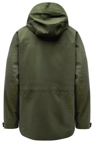 Chaqueta de caza para hombre con un look atemporal, ideal para cacerÃas de fincas, poscacerÃas y uso diario. Transpirable y protectora en climas húmedos gracias a su tejido de doble capa con membrana cortavientos e impermeable, costuras selladas y acabado con tratamiento DWR. Cuenta con cremallera bidireccional con tapeta, cordones ajustables en cintura y bajo, y un cuello suave con forro polar para mayor comodidad. Los bolsillos delanteros con fuelle cuentan con botones a presión, solapas y aberturas laterales para facilitar el acceso a las manos. También incluye bolsillos calientamanos con forro polar, cremalleras y tapetas, dos bolsillos interiores con cremallera y un pequeño bolsillo de seguridad. Los puños se ajustan con botones a presión y la capucha desmontable se ajusta con cordón. Tejido exterior: 48% algodón, 41% poliéster, 11% poliamida Forro: 80% poliéster 20% algodón - Costuras selladas - Acabado repelente al agua - Membrana impermeable y cortavientos - Cintura ajustable - Laminación de 2 capasTambién le puede interesar
